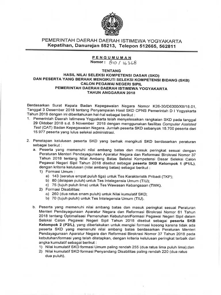 Berikut tata cara pendaftaran cpns pemda diy: Berikut ini kami sampaikan jumlah pelamar cpns pemda diy formasi . Dihimbau agar tidak mempercayai apabila ada pihak tertentu . Jadwal pelaksanaan seleksi kompetensi dasar cpns pemkab bantul ta 2021. Berikut kami sampaikan hasil ujian skd cpns seleksi asn tahun 2021 tilok jogja expo center (jec) 1.